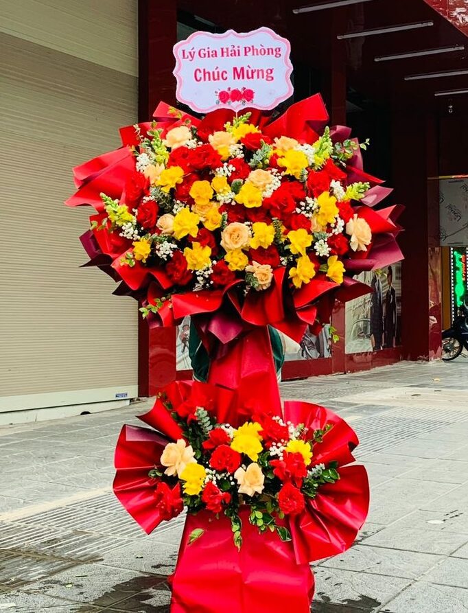 Một kệ hoa đẹp không chỉ làm nổi bật không gian mà còn truyền tải lời chúc ý nghĩa.